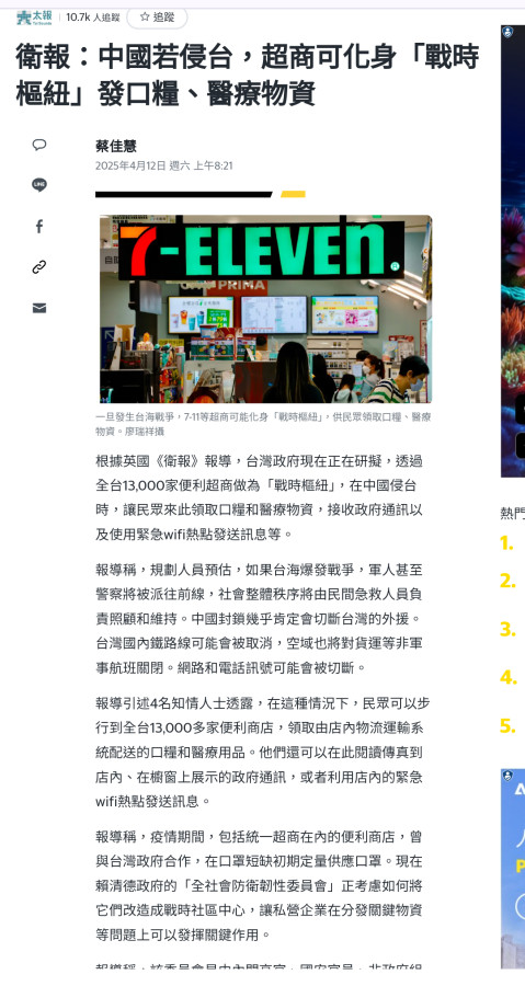 黨媒歌頌政府穩定股市,外媒幫我們想好開戰後台灣怎麼做!想的這麼完美,不打都不行了!我家離左營軍港10幾公里而已,一聽到砲聲先儲水,然後帶軍刀布袋去超商搜刮食物,你賣我花錢買,不賣就直接搶了,店員早先搜刮了!大家先搶先贏,軍刀不是要搶劫,是防台灣人的,大家躲好好,店員傻的嗎?等政府準備好都幾天了,超商還開店發物資?笑死我了!
