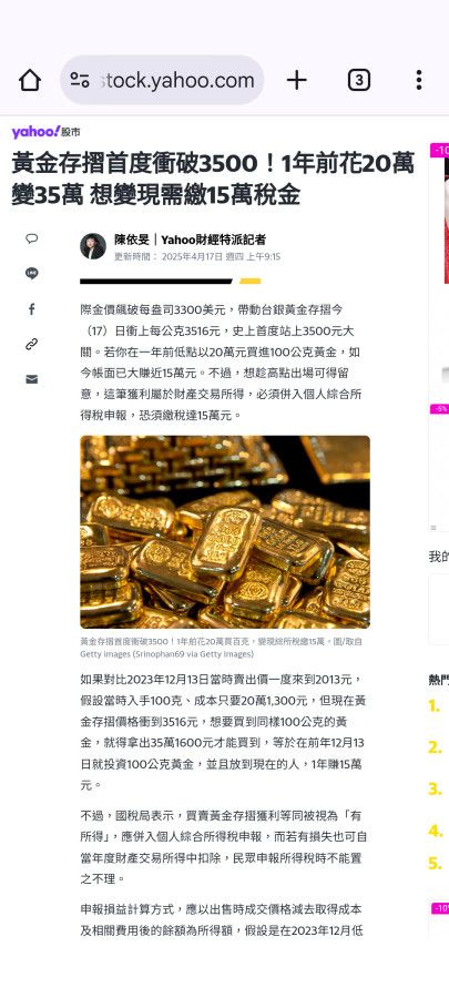 回覆 yesk:報所得15萬,算你賺的錢。實體黃金報稅是...