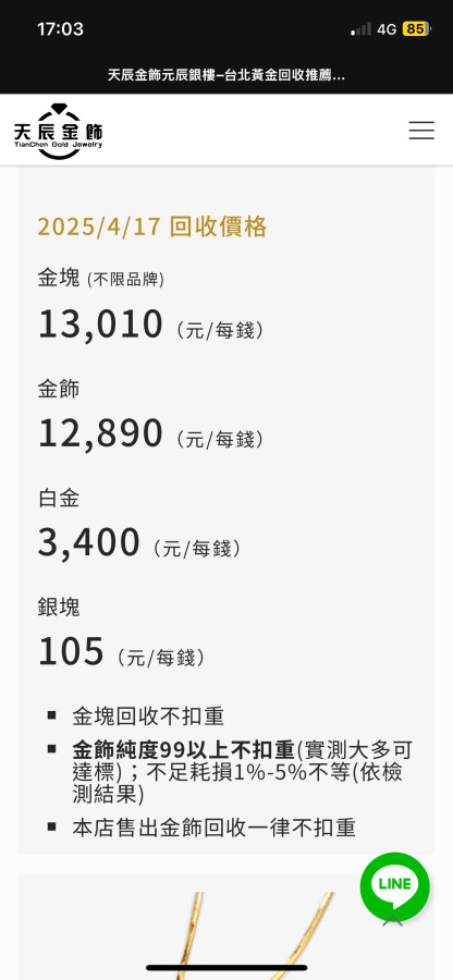 回覆 富力士金:剛問了附近銀樓回收價一錢12560(爛透...