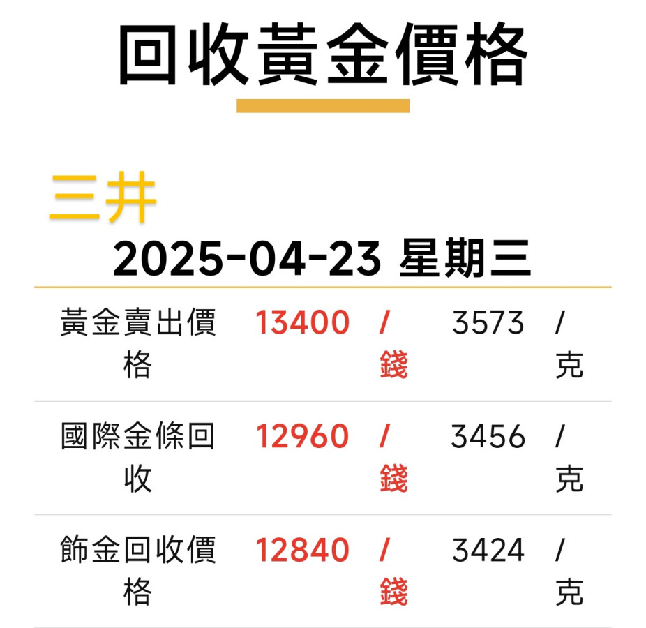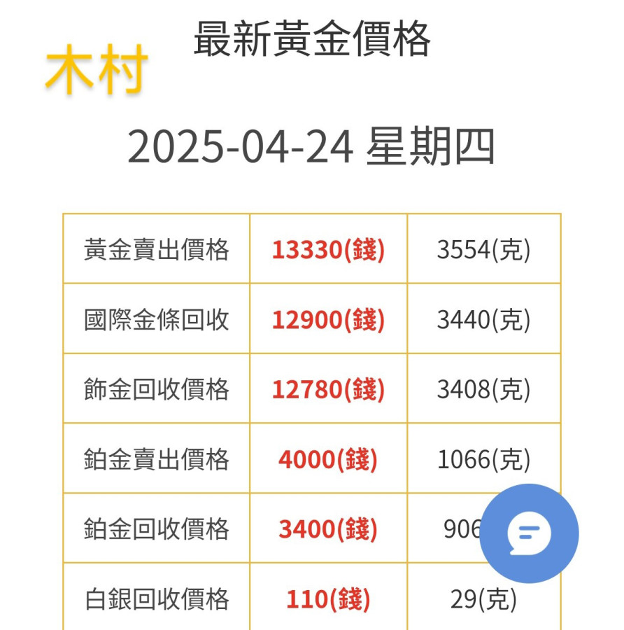 回覆 塔綠政客去死:4/24 飾金回收價(千足金)展寬 12...