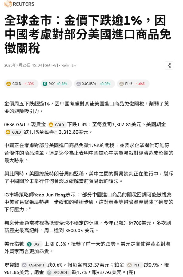 回覆 良心報告:論「黃金是否跌300以上」?壹、跌價原因...