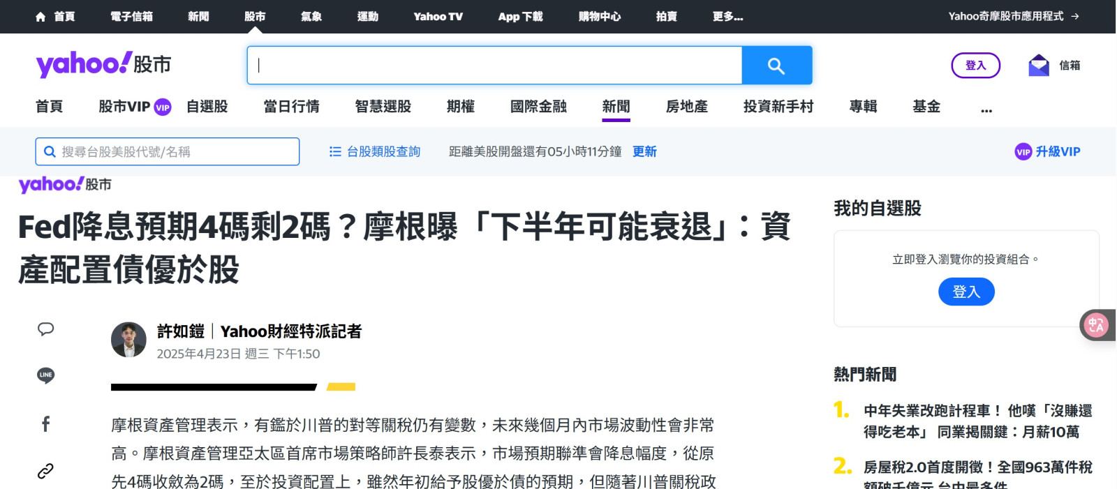(2) 須留意風險「地緣、貿易、金融、美國總統及聯準會」訊息。