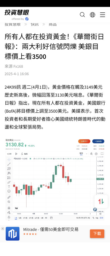 美國股市跟台灣股市就靠川普一張嘴在撐,胡說八道就能拉高,等到關稅戰影響到了,公司倒一排,川普說物價跌了,他沒說的是,經濟預估差,房價大跌,把民生必須品的通膨嚴重拉下來了,金價看好看跌都是富豪投資機構操控,看好看跌就50 100美元來猜,不要說要漲到4000 5000了!或者說要跌到3000 2500了!飯要一口一口吃,中東還沒平靜,俄烏也沒那麼快和談成功,連印度巴基斯坦也在衝突,老共也在南海沿岸擴張武力,台灣遇到老共龜兒子,遇到美國龜孫子,對付自己台灣可勇猛的狠,一月份金價2600,二月2700,三月2800,四月3000瞬間3500,瞬間3300,大家就感覺要倒了,漲900是假的,賠200是真的,好慘啊!
