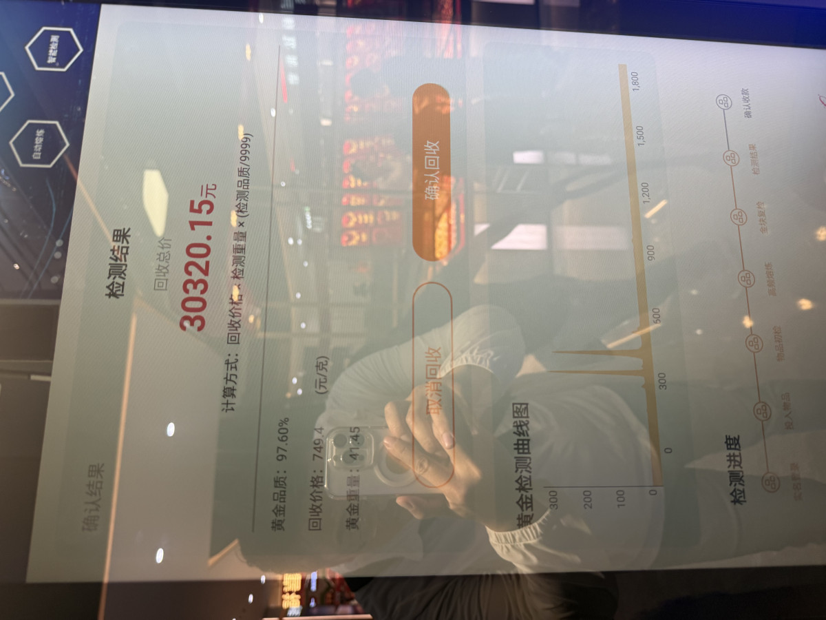 一台大大販賣機機器流程是這樣的,所有動作都在裡面(我以為有人躲在裡面去燒金檢測🤣)先放黃金進去稱重➡️光譜儀初步檢測➡️然後融化成金疙瘩➡️在覆檢秤重跟光譜儀器測純度➡️如果不想賣可以這時候停止回收繳費30塊人民幣、拿回金疙瘩,如果確定回收後就會按照當然金價、純度去計算實際回收費用,之後五分鐘將錢轉到銀行帳號!整個驗金跟跟付款至少25分鐘😓