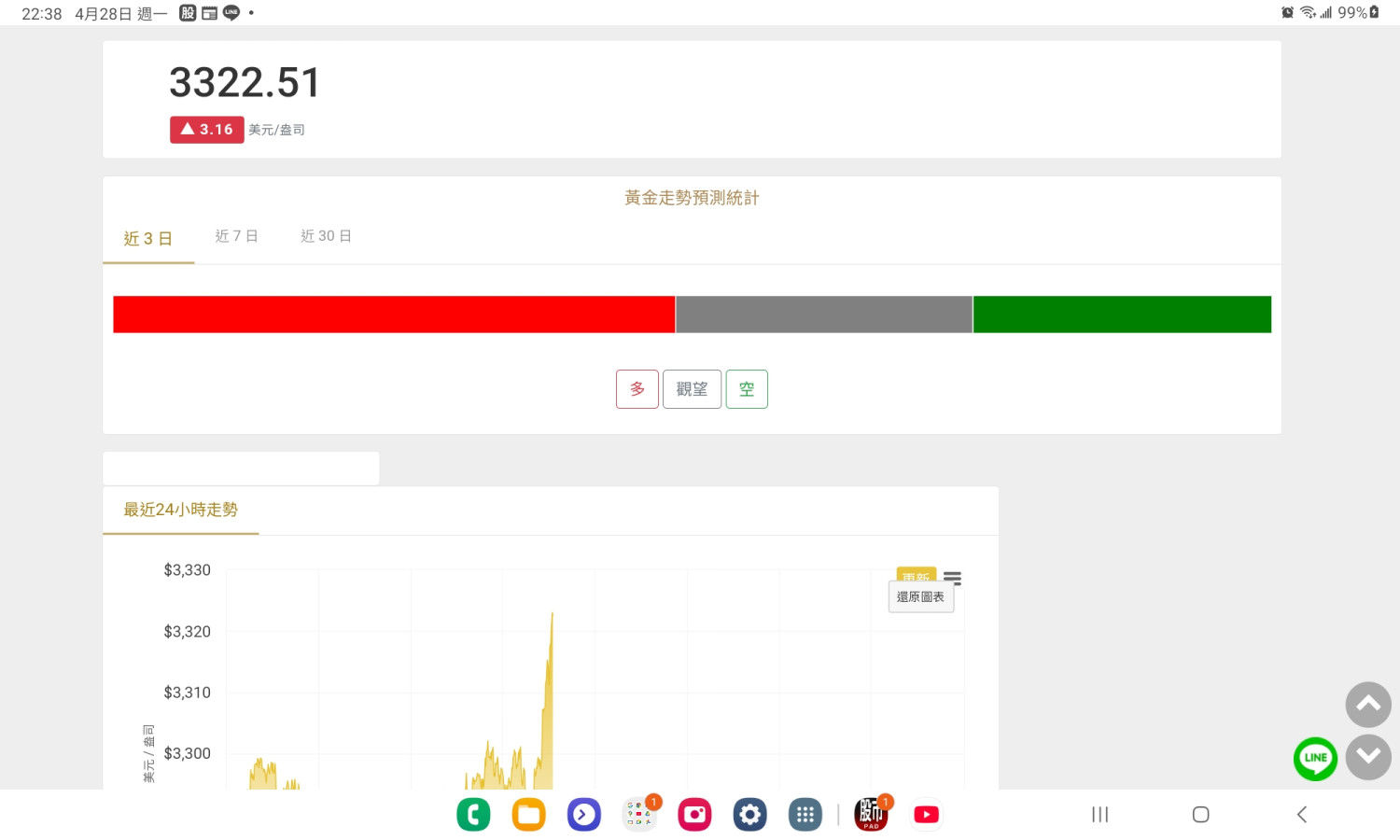 今天我才賣了一小批黃金(小賺),賠錢黃金部位開借券,再等反彈,然後現在就漲了🤣