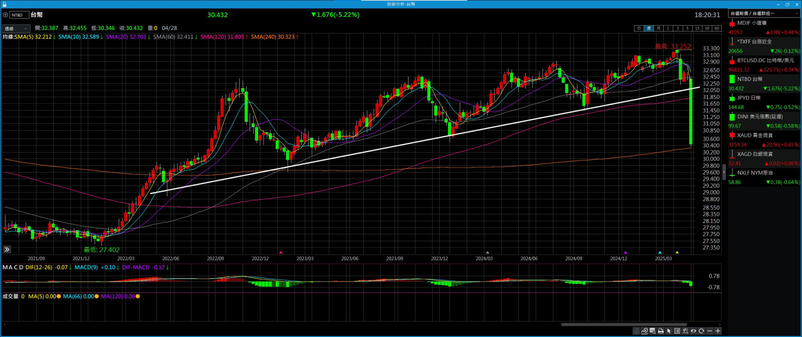 昨天開始美元暴跌,台幣飆升,今天繼續....