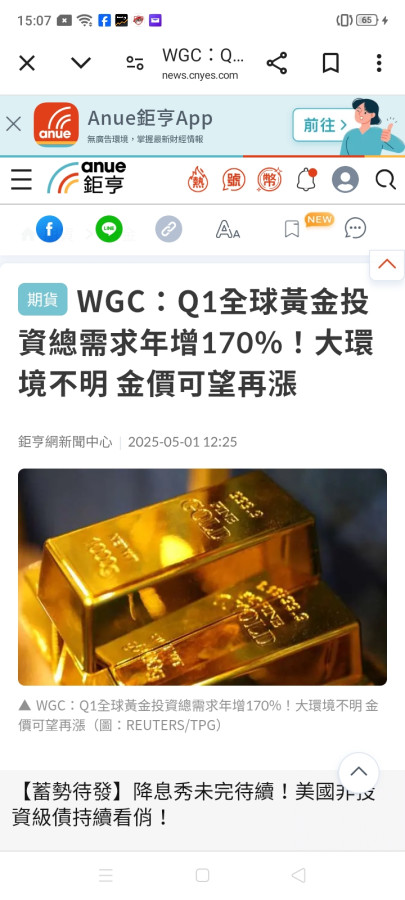 閒錢置金漲跌無傷,大漲就出大跌我等就是了,也就幾公斤金子,亮小弟就20-30兩吧,多分析多看勝於話多無益!省得被說大尾麥銩小尾恰恰銩😅