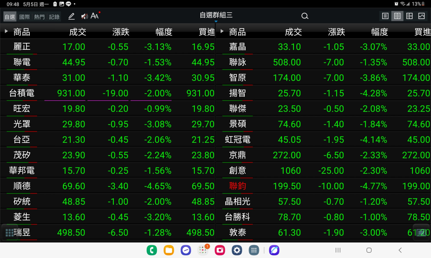 電子股全綠了