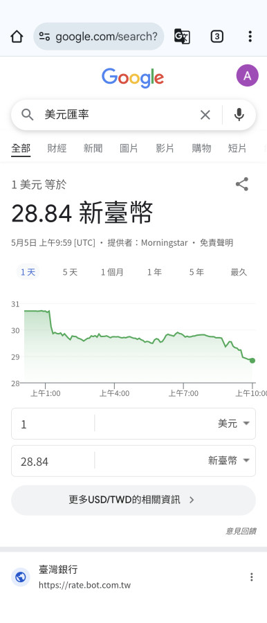 回覆 匯率:看國際匯率比較準,今天沒有升破29.4以...