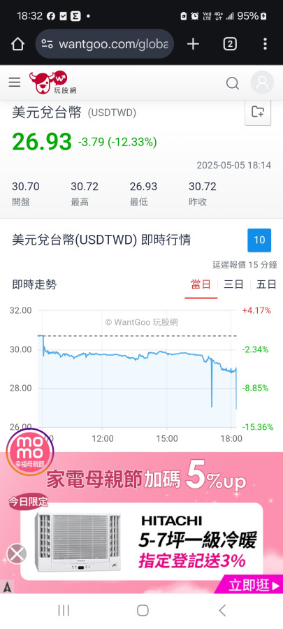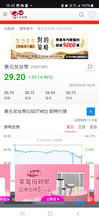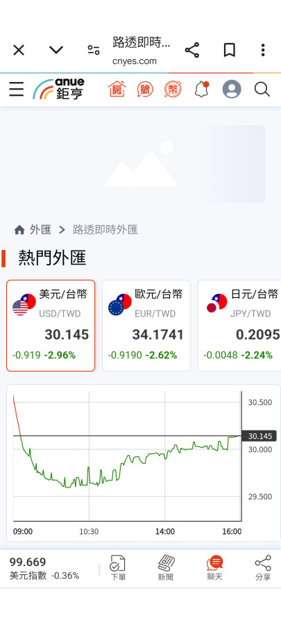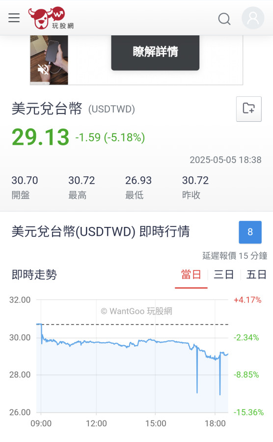 回覆 雄大:現在美元台幣盤後是被鎖住的明天早上9點開...