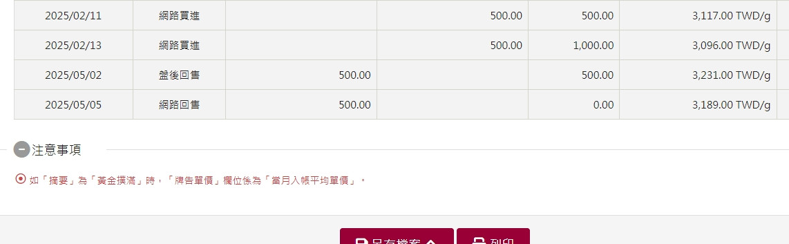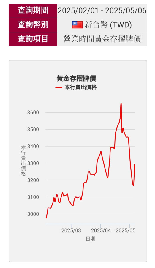 因我查了黃金這一年的歷史,高點都只有一天,前後會差 20-30間,所以我賭晚間出清美價黃金(本來要出一半,後來算了,將另一半也趕在最後二分鐘出清)