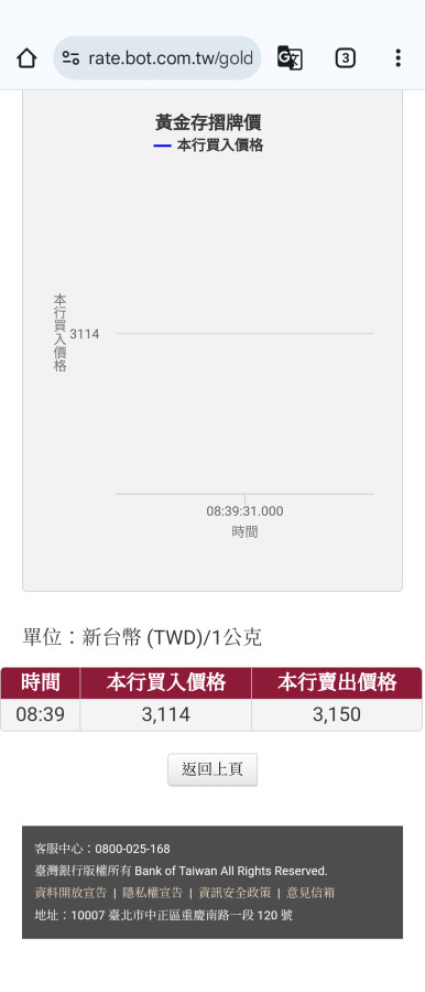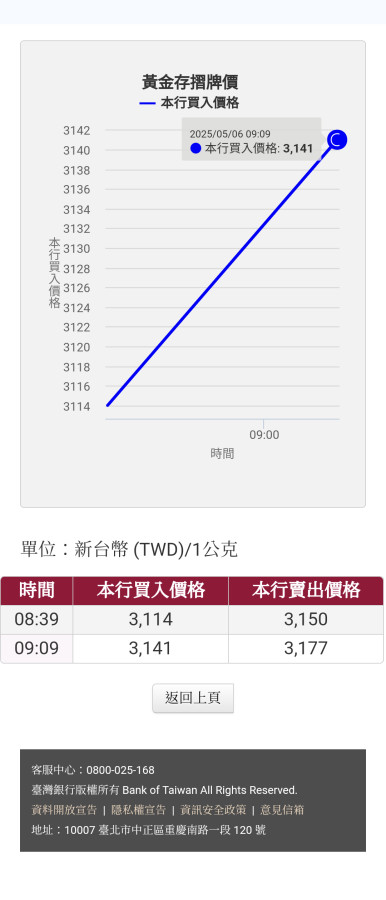 回覆 小熊軟糖:我買在3150黃金存摺但不多40克我怕台...