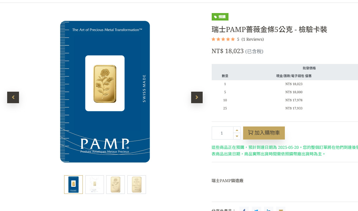 我也打算明天賣"台製"金豆 買國際限量的小金條 局勢不穩定 先入手小薔薇 比金價最高時便宜幾百塊 那又如何 這種我不會賣 也不買2手剪標的