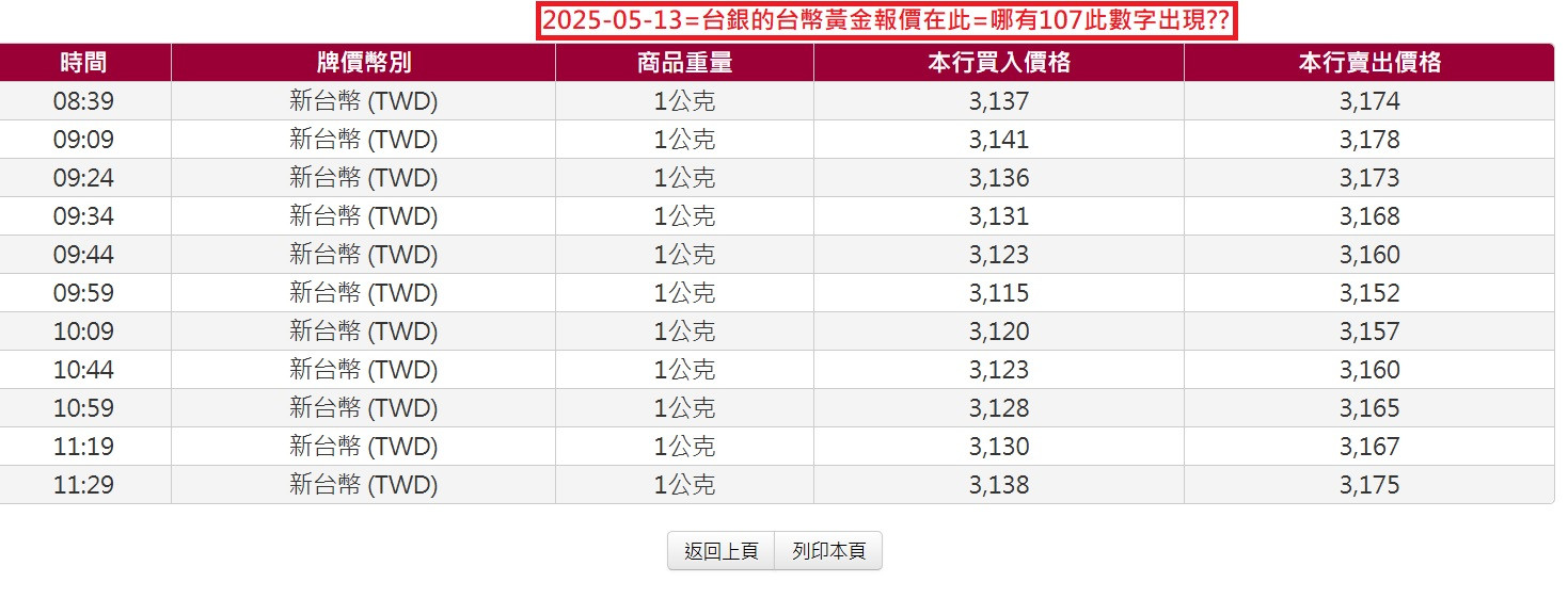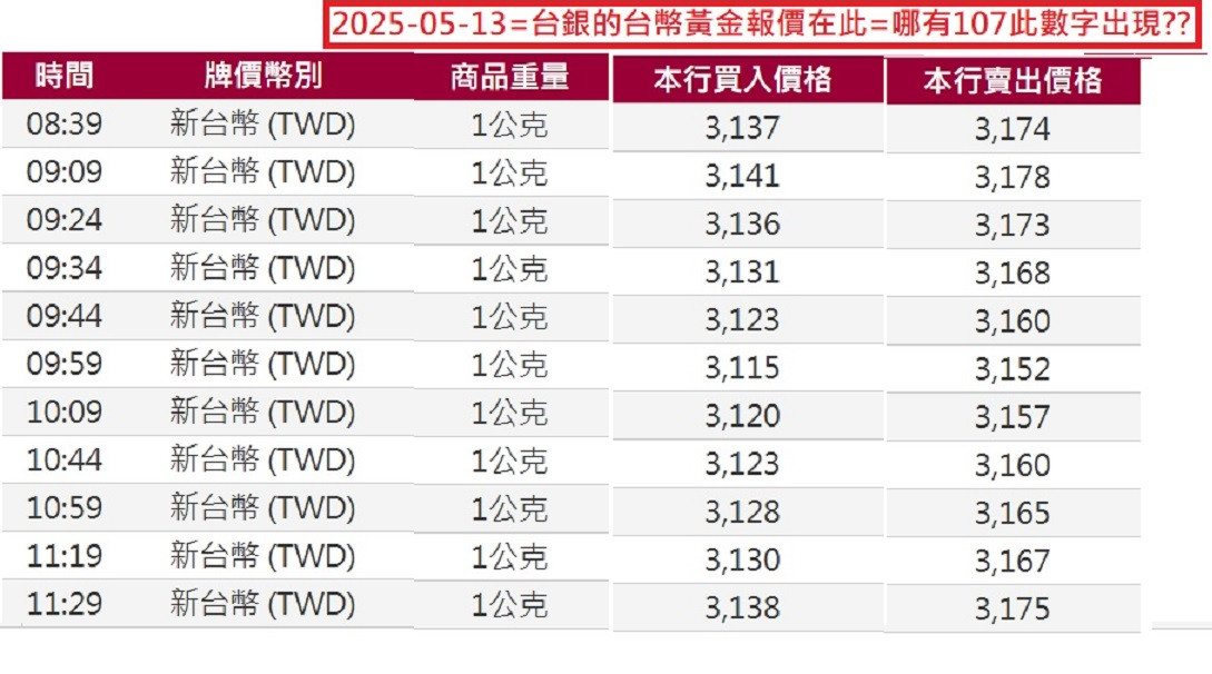 台幣黃金=卻由3152翻轉至3167元/克