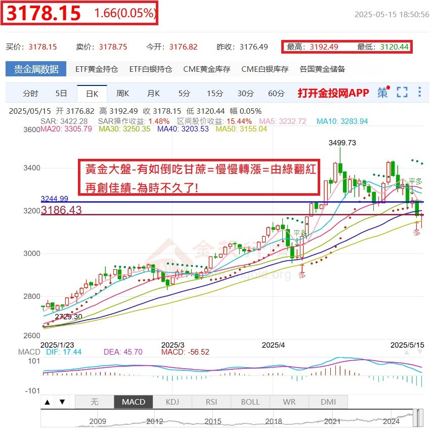 黃金大盤-有如倒吃甘蔗=慢慢轉漲=由綠翻紅