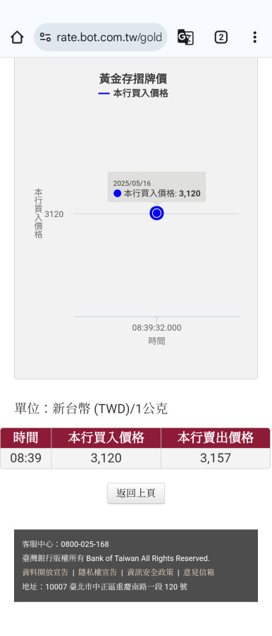回覆 雄大:太可惜昨天沒有看到二字頭😅台幣計價黃金存...