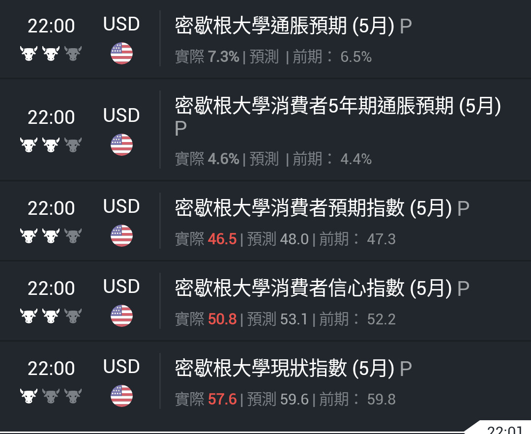 密歇根大學消費者信心等指數都比預期的低(有利黃金上漲)