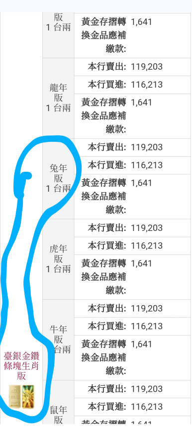 回覆 小金匠:台銀一兩的可能沒貨,多問幾家看看有無回售...