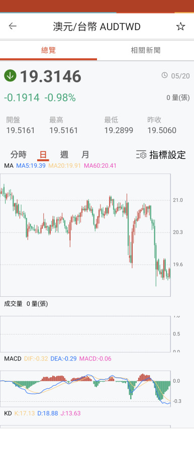 回覆 雄大:我明天分批進場澳幣又要到底部了19~19...