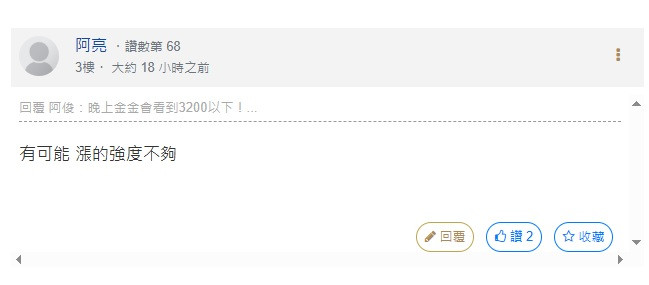 回覆 阿亮:再度衝破壓力3220 衝阿漲上去...