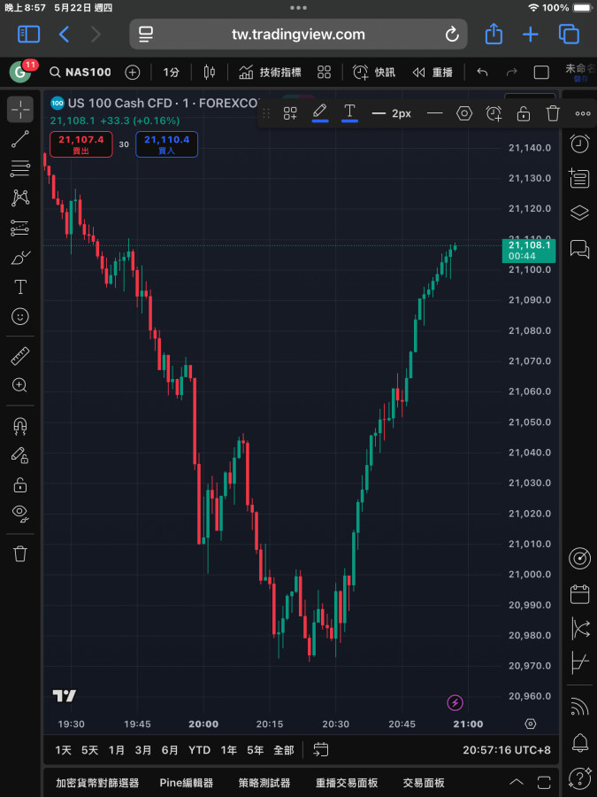 雖然當下市場無波動,但似乎讓納指多頭點燃反攻的信號,希望今天能回補一點啊!
