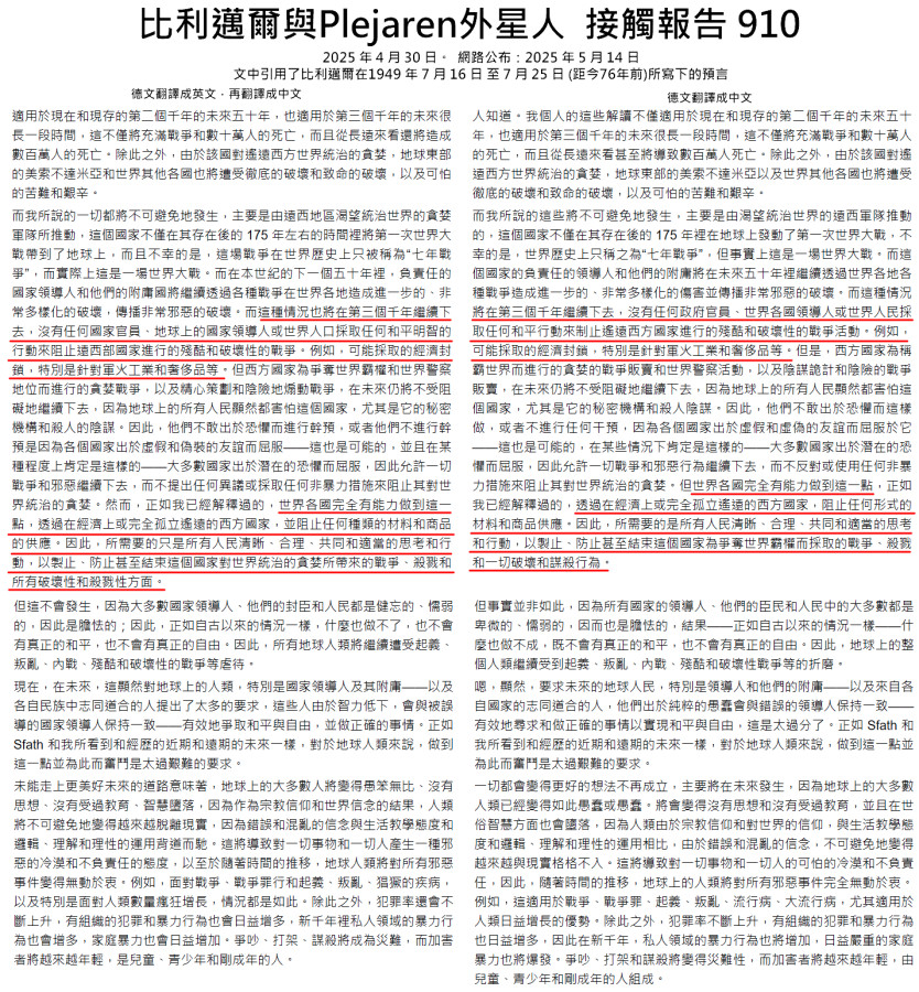 對照這陣子的新聞,或許你也能從中感受到比利邁爾與Plejaren外星人的用詞精準度...