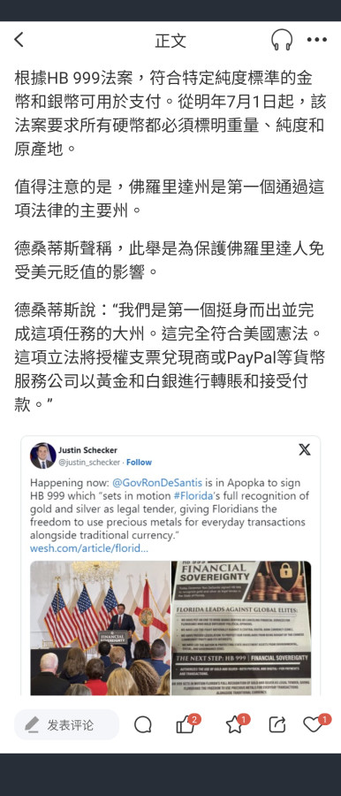 回覆 金銀收藏:通過更多州甚至國家認同,除了黃金外,白銀...