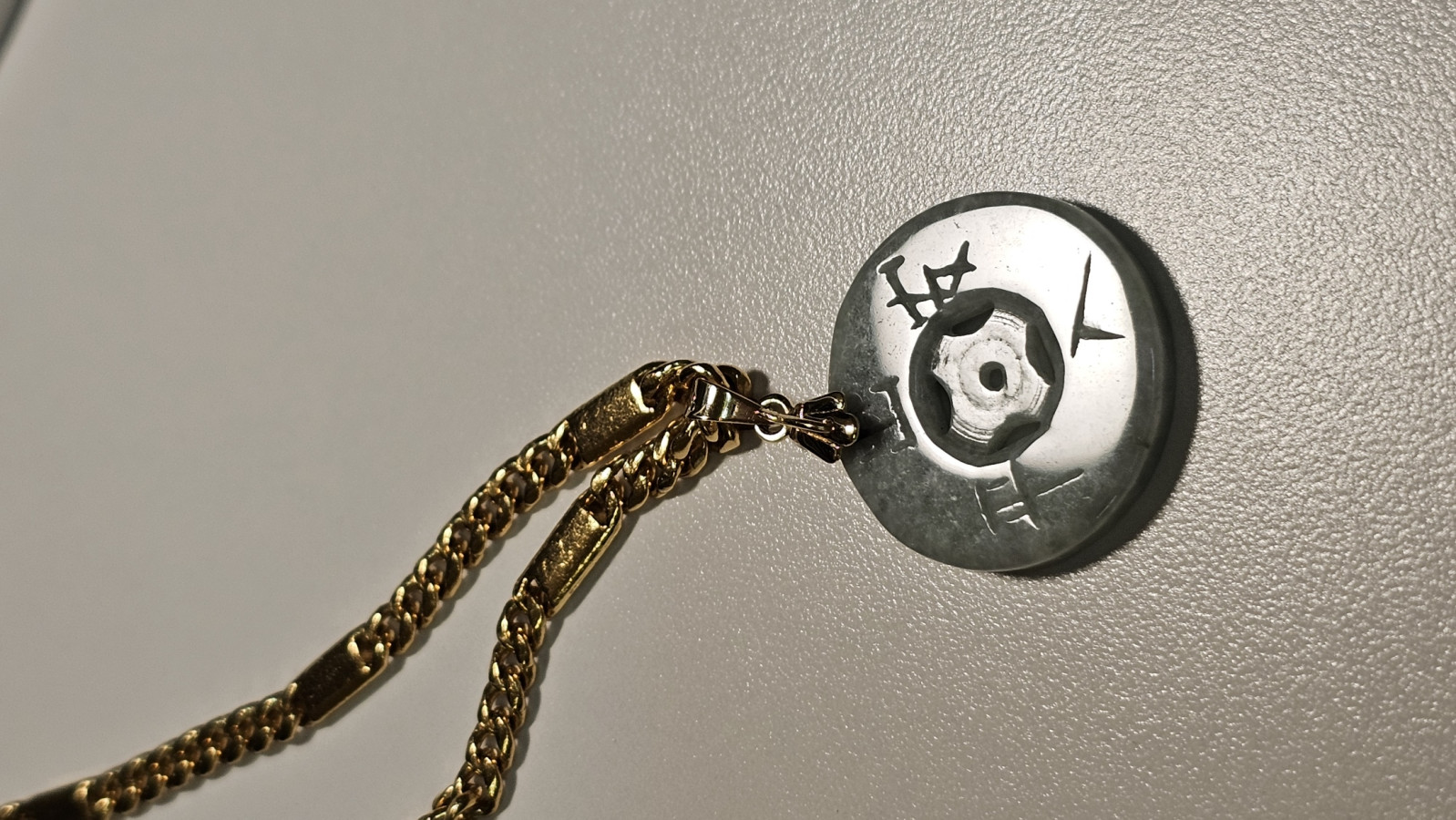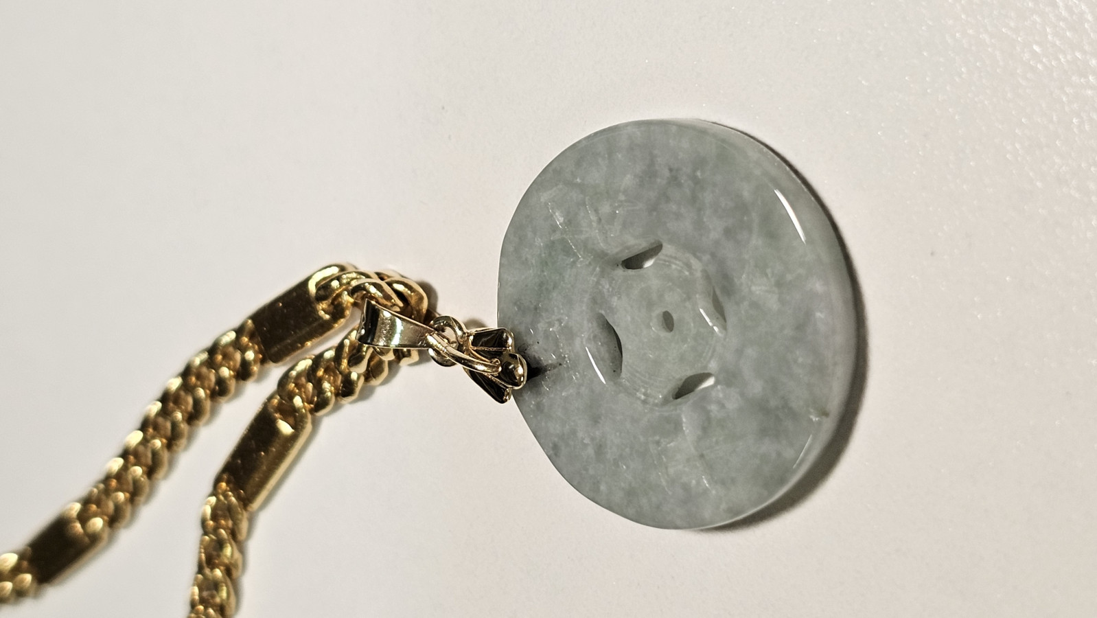 金匠大的陰陽太極兩個玉珮真美!吉寶也喜歡佩帶金鍊玉珮。照片是吉寶的出入平安^______^