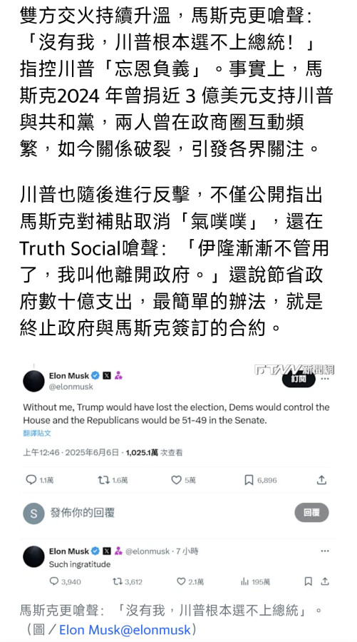 回覆 塔綠政客去死:講得也中肯,沒有馬斯克 3億鎂的銀彈,你...