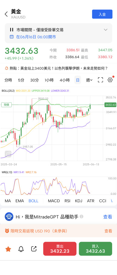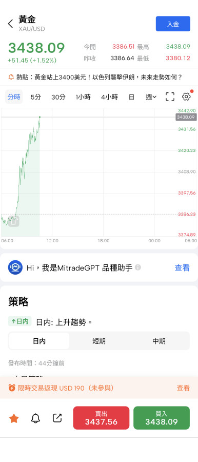 10點如果破3450,深夜我猜能破國際金價記錄,伊朗不是小國,不然不會在中東打那麼久代理人戰爭,以色列那個總統下台很慘,故意挑事不會讓戰爭停止,跟烏克蘭一樣早過選舉日期,想當萬年總統,就看今天會破記錄還是每逢假日就大跌
