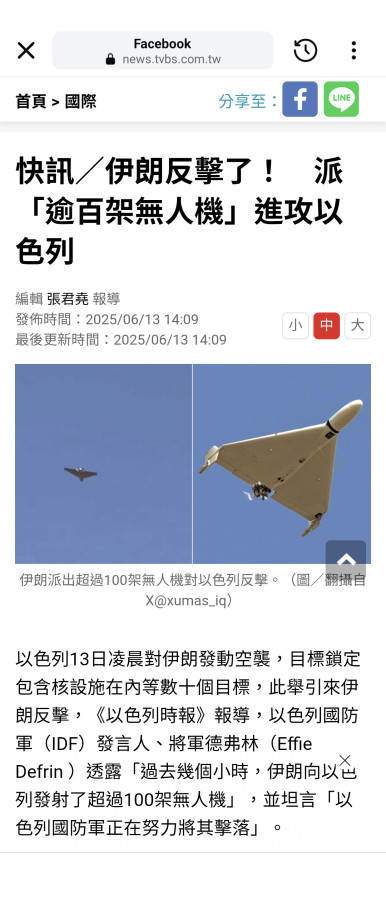 回覆 雄大:伊朗反擊你才派出100架無人機🤣太沒有誠...