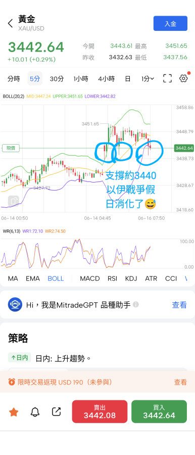 川普那張騙人的嘴又來壓金價,說以色列伊朗要和平解決了。要和平了還把給烏克蘭的兩萬飛彈送到以色列,戰爭升高通膨,這個月聯準會降息機率變低,金價承壓但是還是有撐,今天有機構做空沒空到,繼續看下去