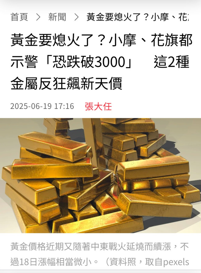 風險:不可能同樣類似的事情一直會產生對黃金有用,例如:2022年烏俄戰爭就是一個例子,衝上2000,沒有多久下跌,因為沒有新的東西,風險已經消耗完了.