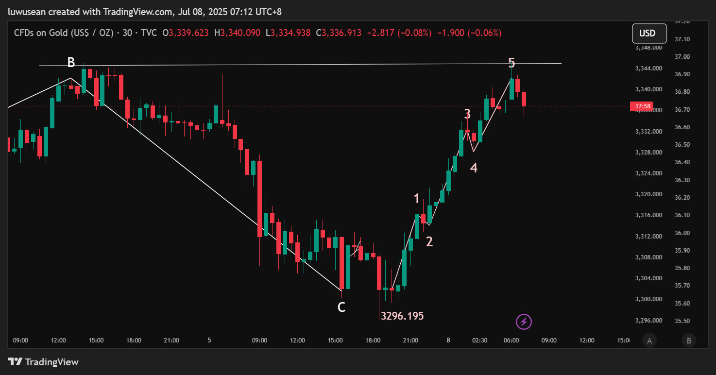阻力出現(小心波走完,B山頭壓力線),小休整在所難免。