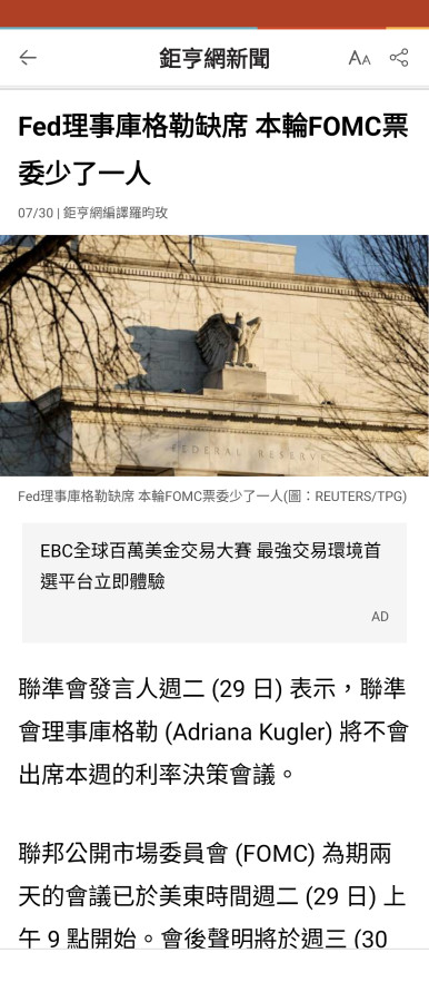 Fed理事庫格勒缺席 本輪FOMC票委少了一人