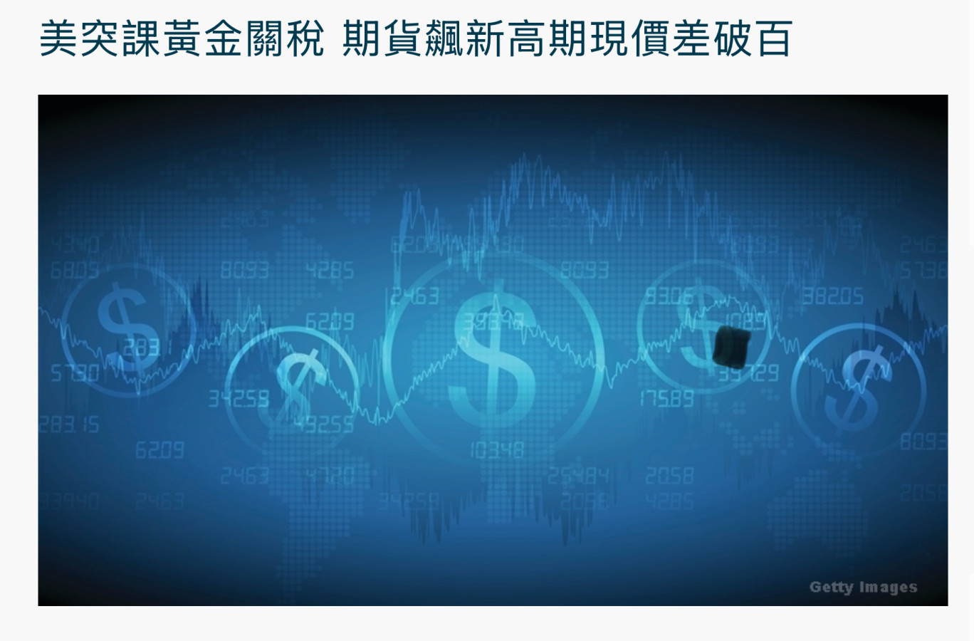 根據《金融時報》周五 (8 日) 報導,川普政府突然宣布對一公斤和 100 盎司金條課徵關稅,震撼全球黃金市場。美國黃金