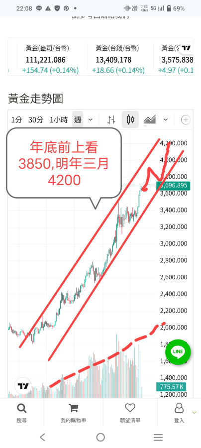 一般這種旗形的整理完之後,應該會上漲,理論會上漲等比的價格,所以年底前,會上漲約500-550美元。