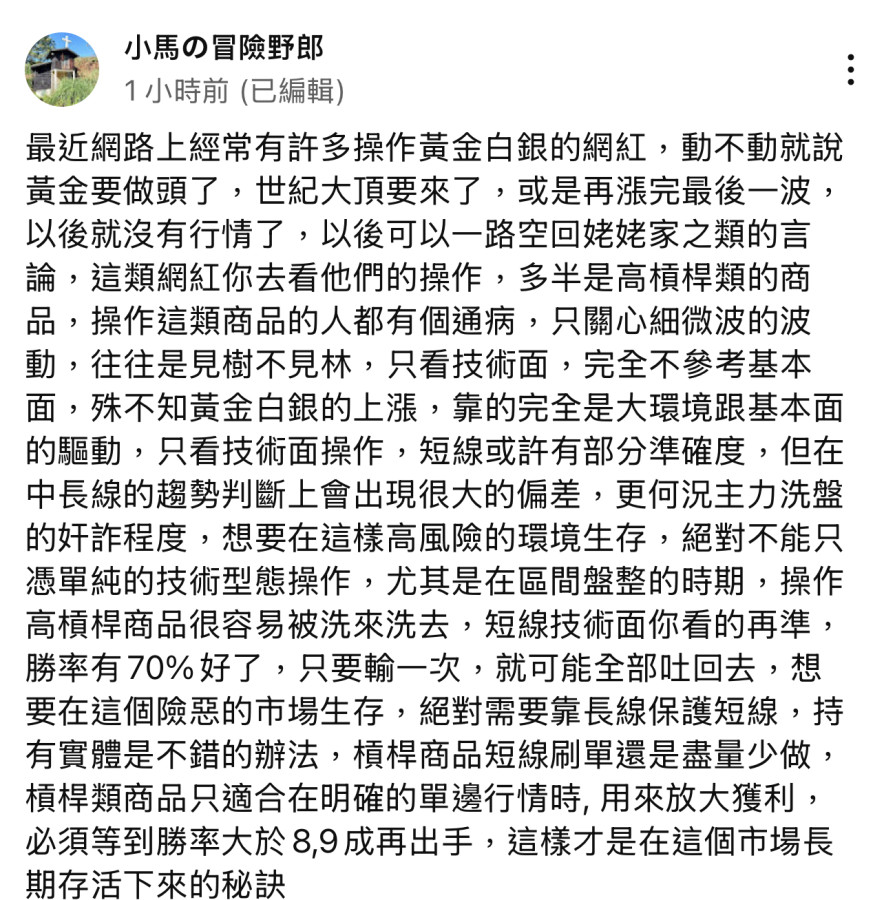 回覆 水上雲:黃金長期持有都沒賣的人若母本夠大坐在家裡...