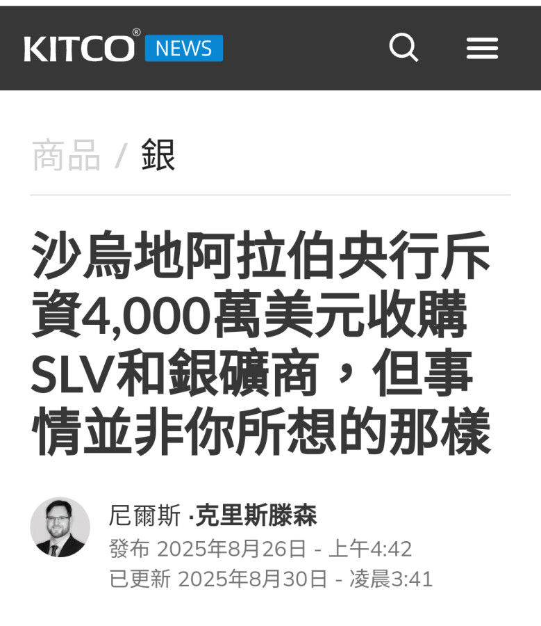 上週晚些時候,沙烏地阿拉伯央行進軍貴金屬市場的消息引發一些交易員和分析師的關注。提交給美國證券交易委員會的13F文件顯示,沙烏地阿拉伯央行在第二季度購買了93.2萬股iShares白銀信託基金(NYSE:SLV),價值3,057.8萬美元。沙烏地阿拉伯央行也買了20.37萬股全球X銀礦ETF(NYSE:SIL),價值980萬美元。