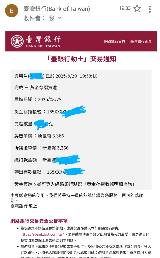 上星期五在最低3366台幣黃金存摺進場不後悔💪