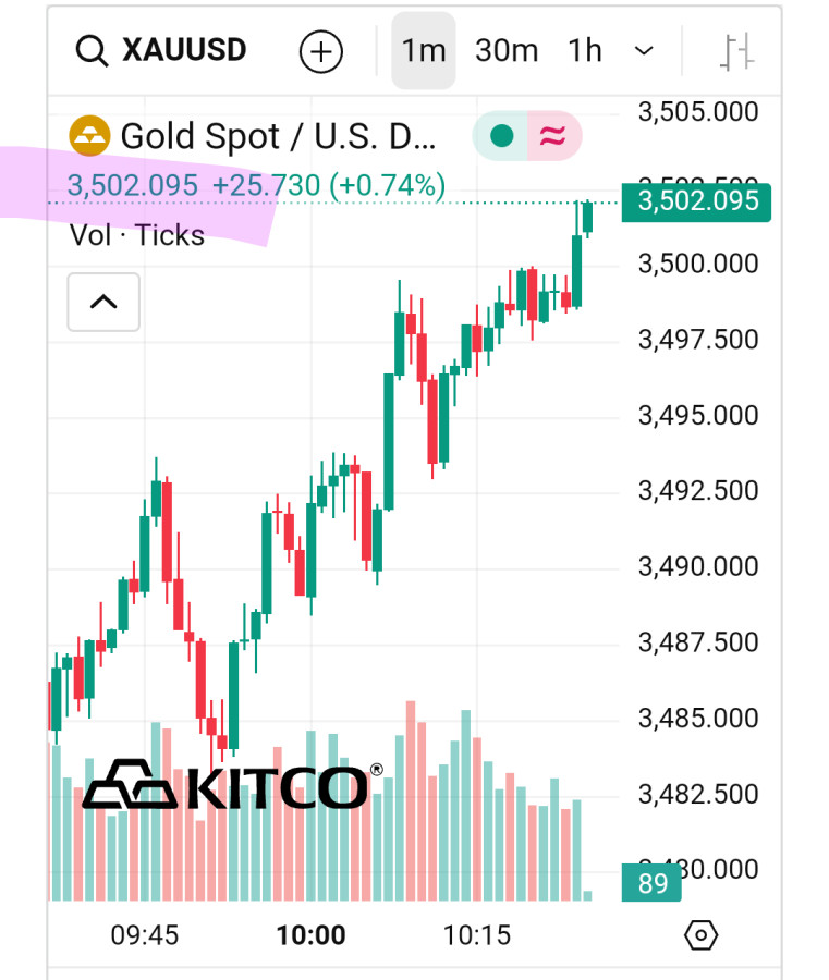 回覆 阿孟:😊正巧在要衝3500美元/盎司的關卡時刻...