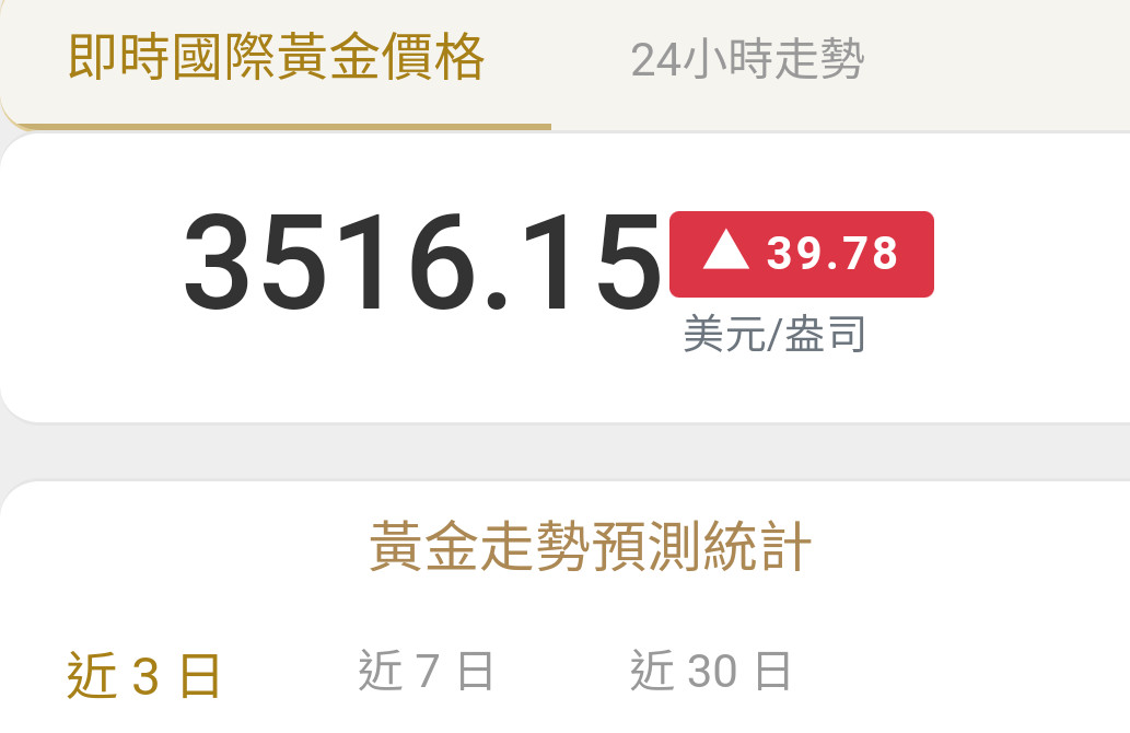 金盤雖破新高價3508美元/盎司=台銀最高價NT$3431元/克