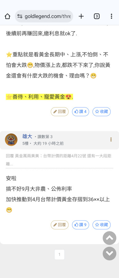 回覆 雄大:19個小時前我回版主另外一面,說台幣黃金...