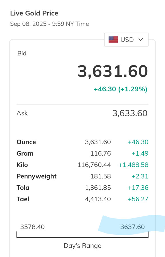 匯率這東西我們控制不了,決定了好價3650出,十公斤大小文鎮每克賺550元可以了!等回落些再補😁