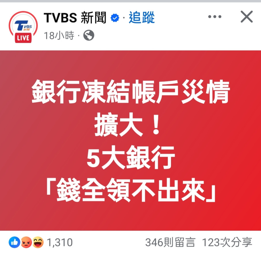 這幾天每天都刷到這個: 一堆銀行 用AI識別就把儲戶銀行帳戶給凍結了,有人遇到過這種事情嗎 ?