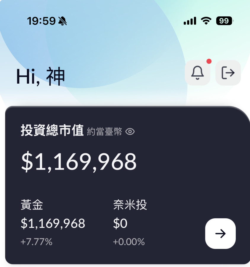 我留1%資金過日子,其他都買實體黃金+黃金存摺了,沒其它投資。