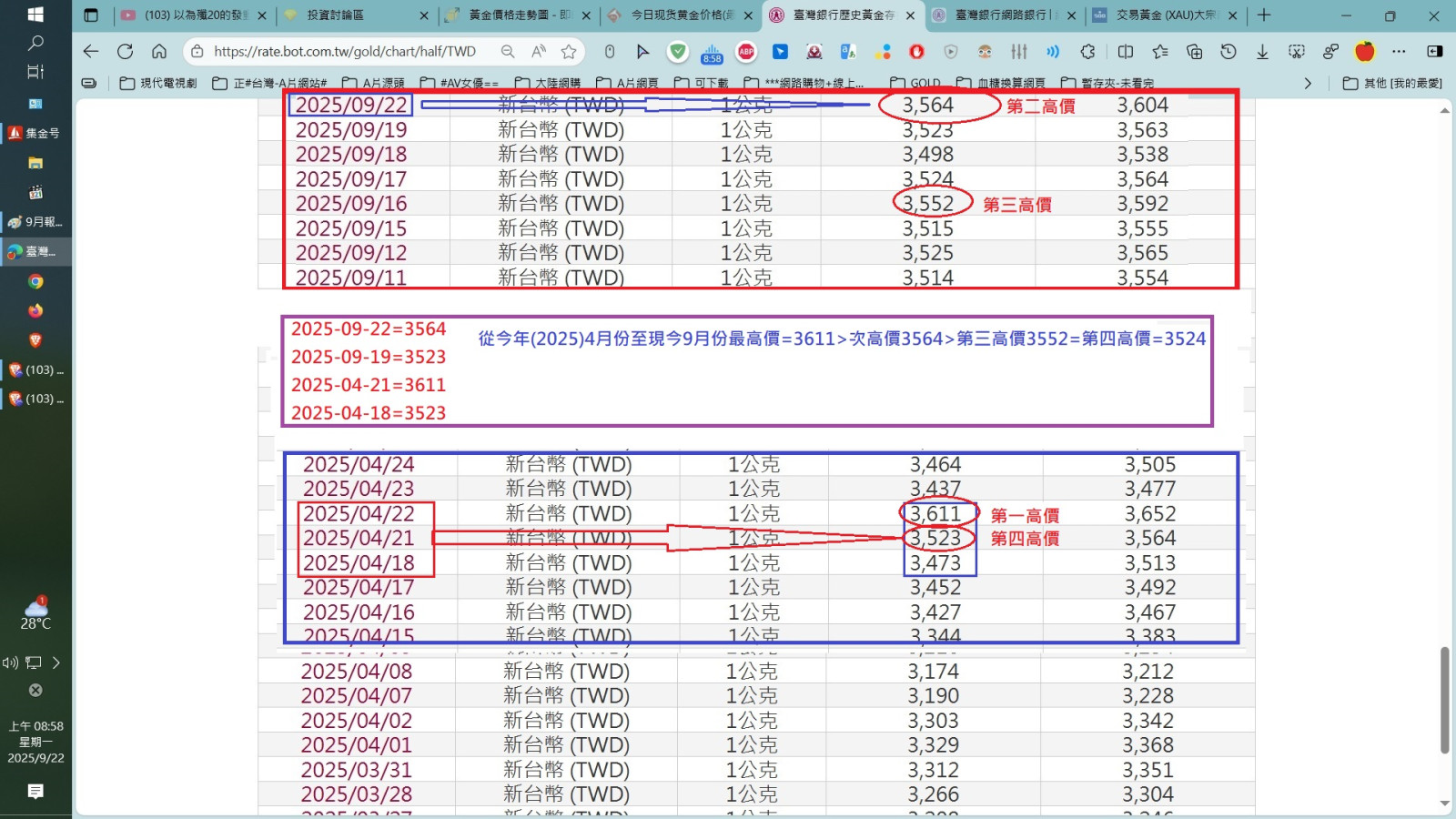 回覆 老頑童:應該更正成:「有史以來」台幣黃金四大高價...