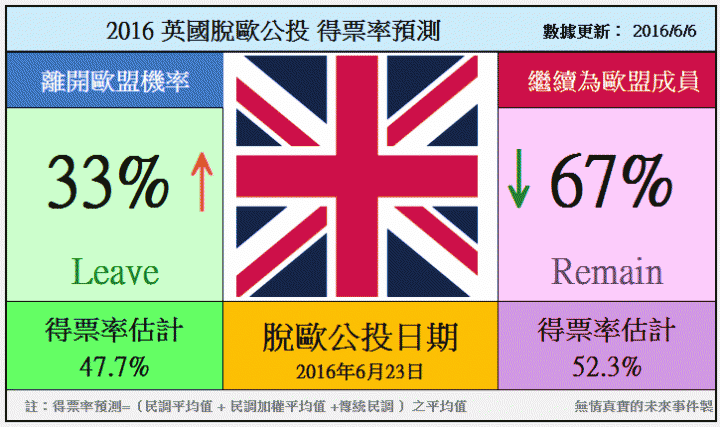 獅哥,有關-英國公投法的實質內容或是實施辦法/歐盟會員國之間當初所定下的去或留協議/國與國之間的歷史恩怨情仇/(如果)脫歐成功之後英國可能會偏向採取什麼模式與歐盟繼續合作/強國之間合縱連橫的政治角力/區域安全的平衡穩定/戰爭爆發的可能性/氣候變可能遷造成人類生存及糧食危機...等等這類的問題.其實可以google一下,或是請教[歸休]版友,他對這方面研究甚深,我個人才疏學淺,對於敘述回答這類問題無法提供很有深度或是精確的答案.向您說聲抱歉.[如果脫歐成功勝出]都需要兩年時間才能算正式脫離,加上脫離之後英國到底打算要花幾年時間去適應脫離歐盟後的英國?最後如果適應不良,是否還願意回歐?到時候歐盟遊戲規則有沒有改變?甚至,歐盟是否還存在?這可能都是數年甚至10年以上的問題.這些問題對我來說都有點太長遠了,留給英國人自己去煩惱吧.呵呵
