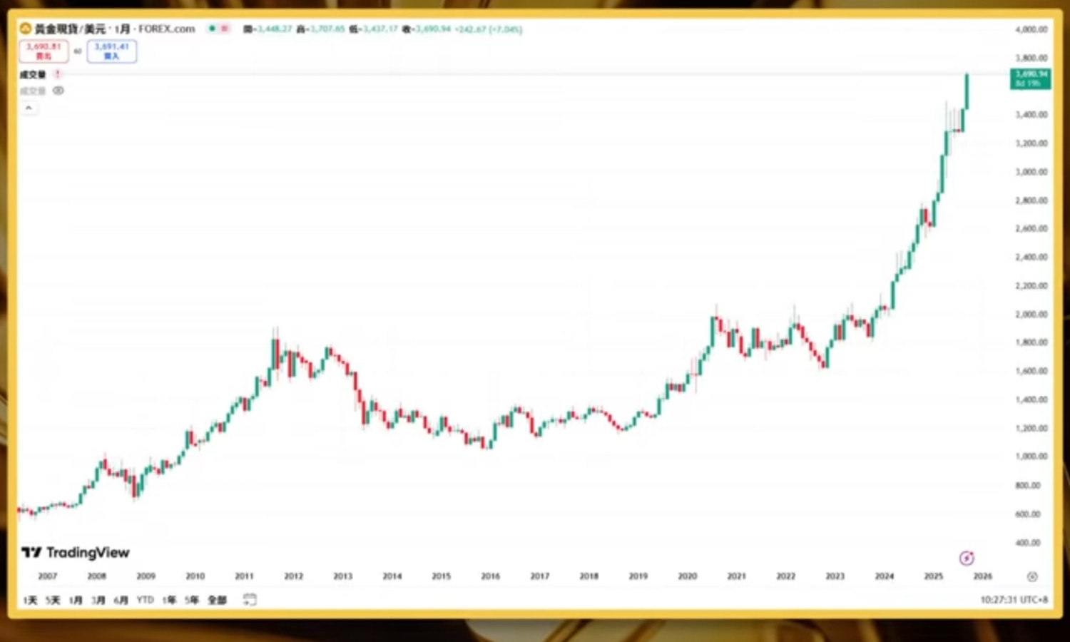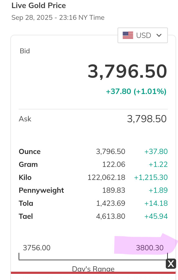 就到4000黃金現貨/美元😁