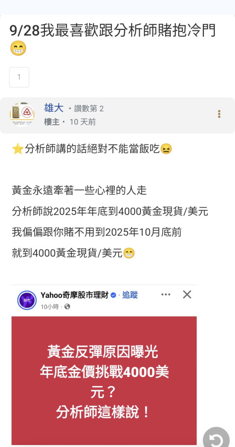 回覆 雄大:⭐分析師講的話絕對不能當飯吃😖黃金永遠牽...